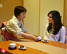 4.在房间小憩的时候,刚才的服务员送来了茶水和点心。